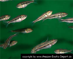 | Hemigrammus rodwayi | Carnegiella strigata | Thoracocharax stellatus |